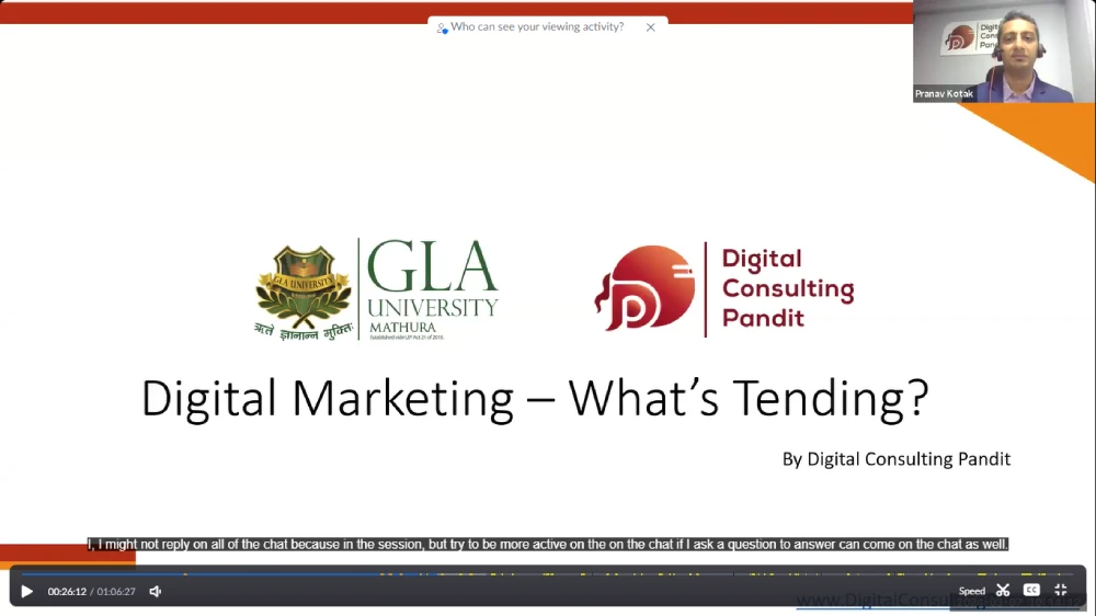 The expert talk on "Emerging Digital Marketing Trends" by Mr. Pranav Kotak was held on 7th March 2024, from 10:00 AM to 10:30 AM. The event aimed to provide attendees with valuable insights into the evolving landscape of digital marketing and equip them with knowledge about the latest trends shaping the industry.