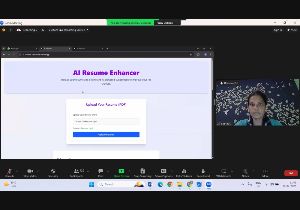 - Best Innovation : Seema (BCA Sem 3) – AI-Powered Resume Enhancer