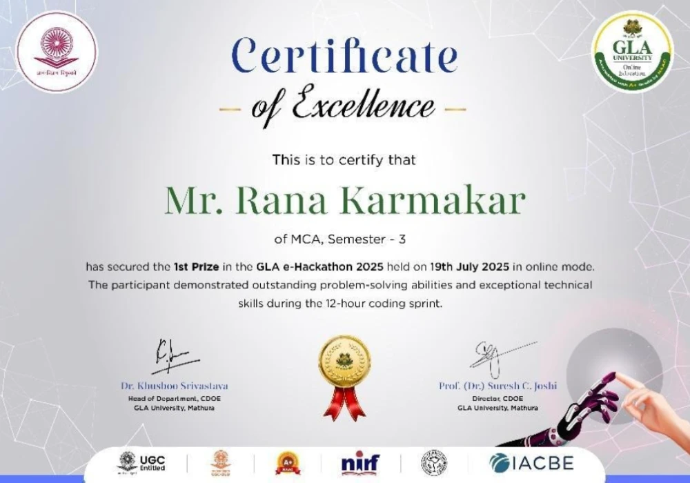 GLA Online successfully hosted its much-awaited GLA Online e-Hackathon 2025 in online mode. The two-day event brought together budding innovators, coders, and problem-solvers to showcase their creativity and technical skills.