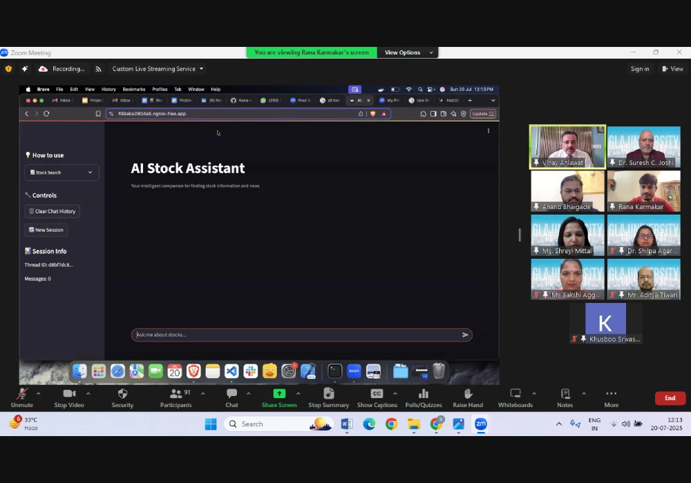 - 1st Prize : Rana Karmakar (MCA Sem 3) – Stock Market AI Agent Chatbot