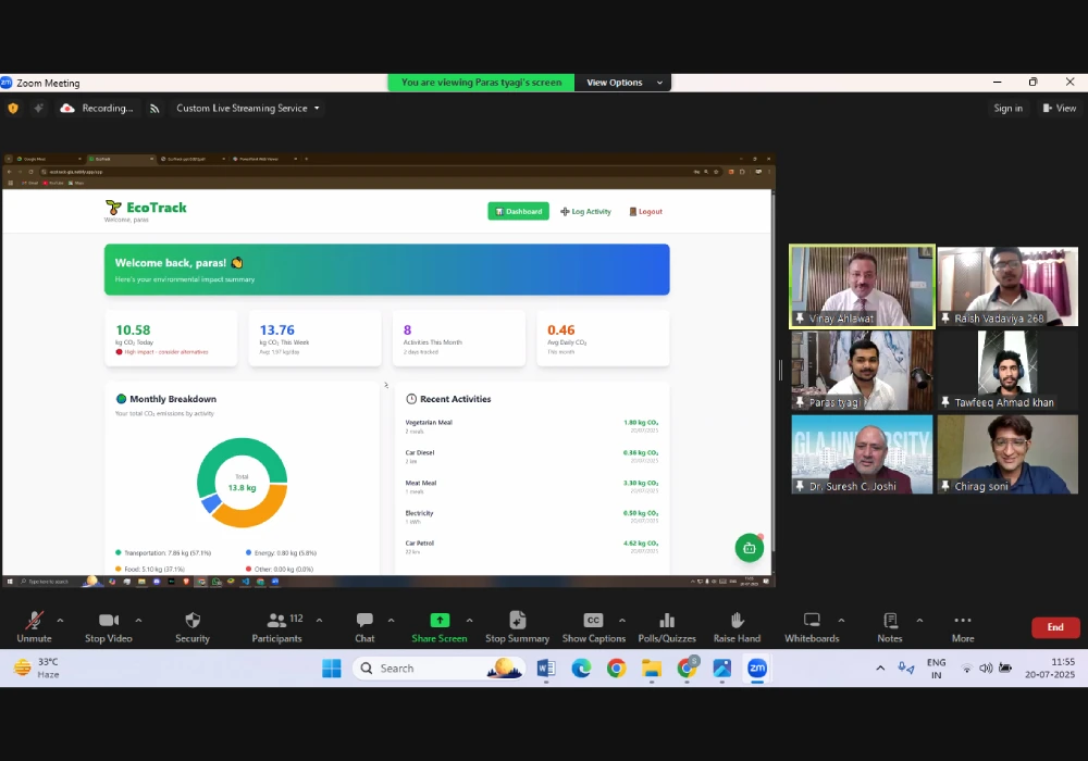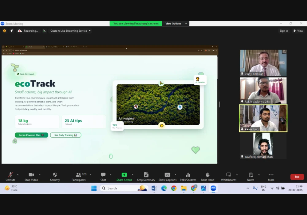 - 3nd Prize (Team) : Raish Vadaviya, Paras Tyagi & Taafeek Khan (BCA Sem 4) – EcoTrack