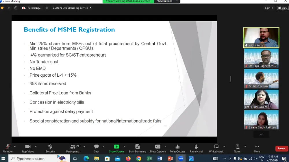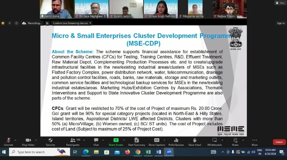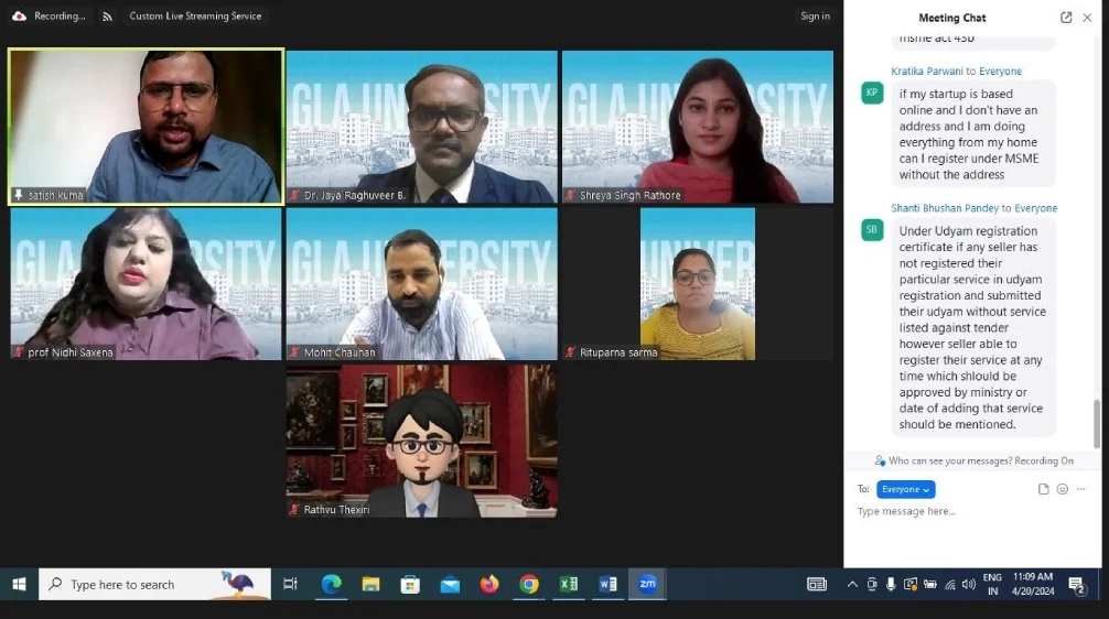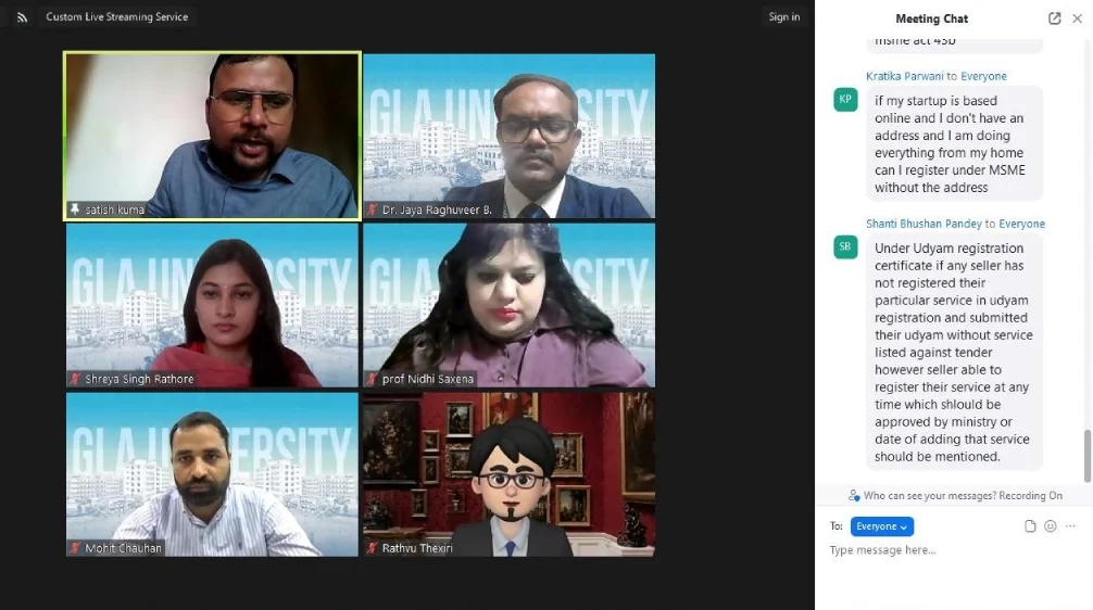 Moving forward, GLA Online University plans to organize similar knowledge-sharing sessions and workshops to empower MSMEs with the necessary resources and guidance to thrive in today's dynamic business environment. Overall, the expert talk session with Mr. Satish Kumar was a resounding success, leaving a lasting impact on the attendees and reaffirming the importance of MSMEs as engines of economic progress. Screenshots attached below from the expert talk session.