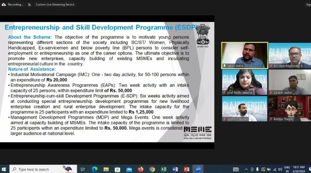 The expert talk session featuring Mr. Satish Kumar, Assistant Director of MSME (Micro, Small & Medium Enterprises), was organized by GLA Online University with the aim of shedding light on the challenges and opportunities for small and medium-sized businesses in the current economic landscape. The event served as a platform for university students to gain insights into the workings of the MSME sector, government policies, and career avenues aligned with the UGC norms and the NEW EDUCATION POLICY.